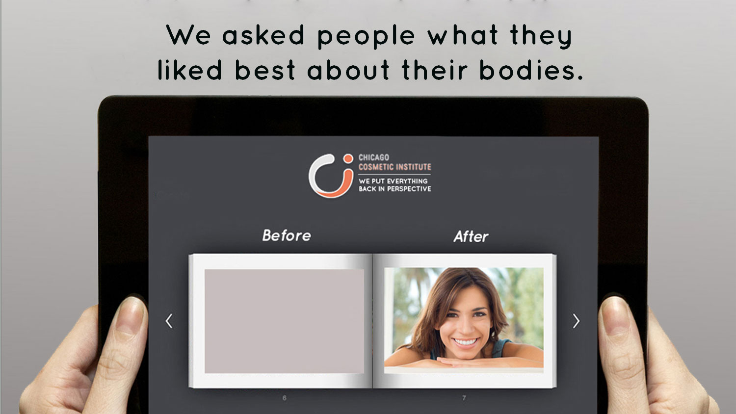 Challenge: Every face and body tells a story, from your lifestyle to your genetics, your environment to your age. Luckily, today it’s possible to rewrite that story. Whether your concerns are sun damaged skin or wrinkles, unwanted fat or sagging, we offer a lasting solution. The experts at Chicago Cosmetic Institute help you write a brand new chapter in your life.