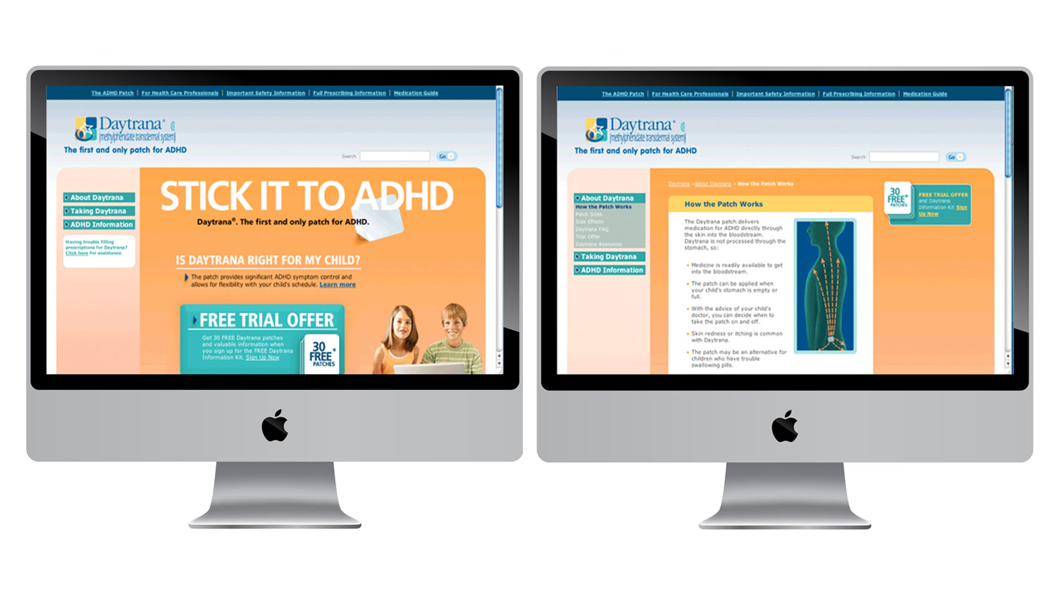 Challenge: Daytrana is the first patch used to treat children with ADHD. The website needed to easily convey to a parent the side effects, treatment and the way the drug easily adapts to a child’s lifestyle. The visual aesthetics and content of the site should make a parent comfortable navigating.