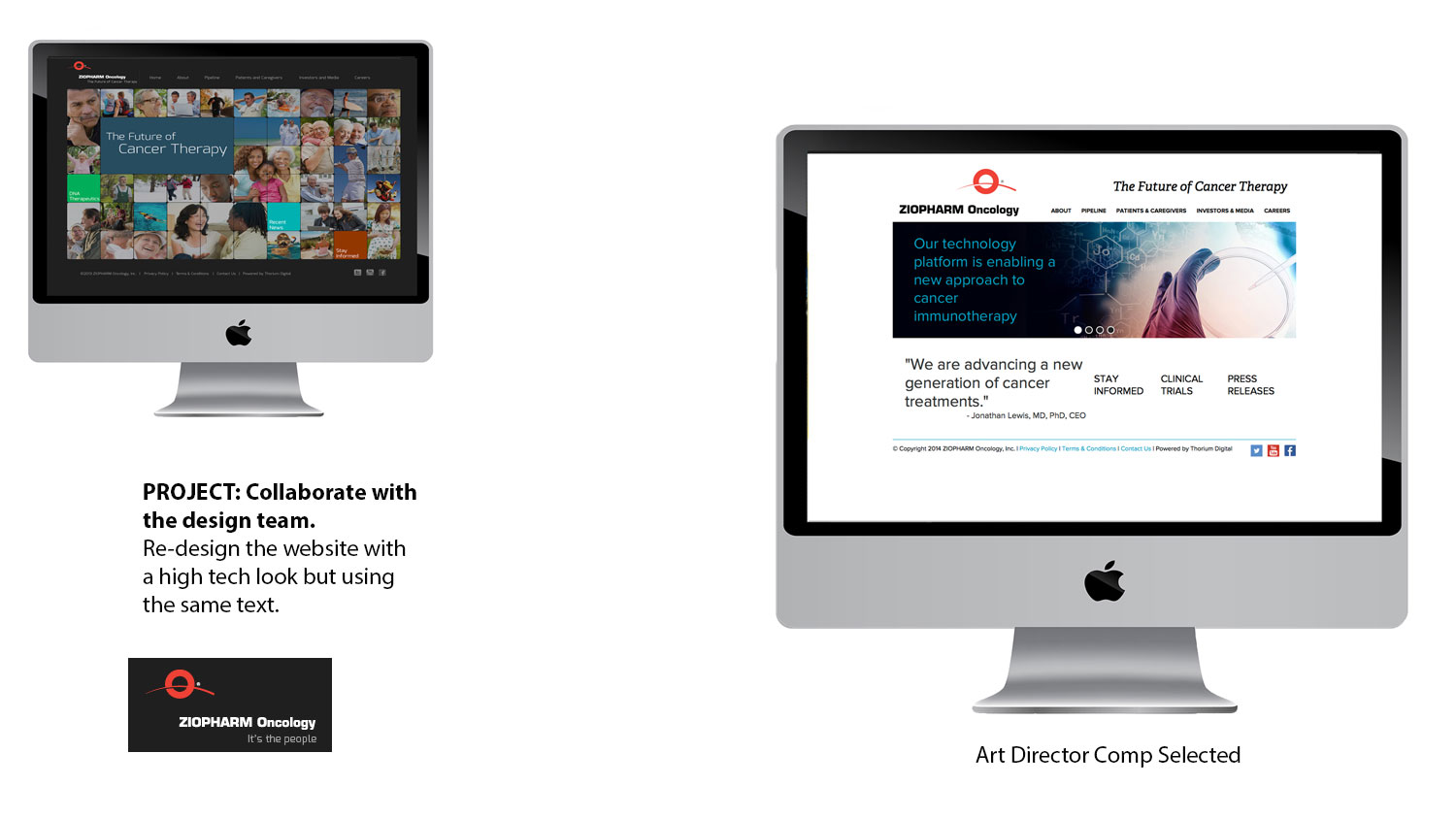 Challenge: The client wanted to redesign the bio-tech site with a more contemporary and hi-tech look resembling the feel of leading technology websites. I was instructed to use the same content as the prior website but with different imagery. One comp needed to have a white background and the other a colored background.
